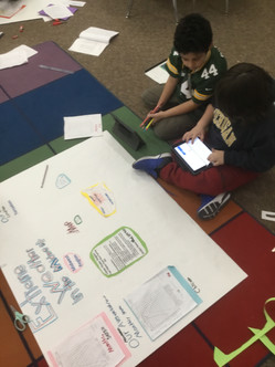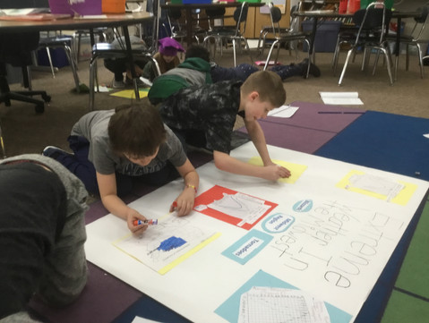 Today team Odyssey groups collaborated to create displays for their Extreme Weather Architects PBL unit. They will be presenting at Franklin's all school students showcase this Thursday. Students created tri-folds to share their line graphs of monthly averages (chosen city in their region), their region map, and features they included when designing their home. they will also display their home models at the showcase.