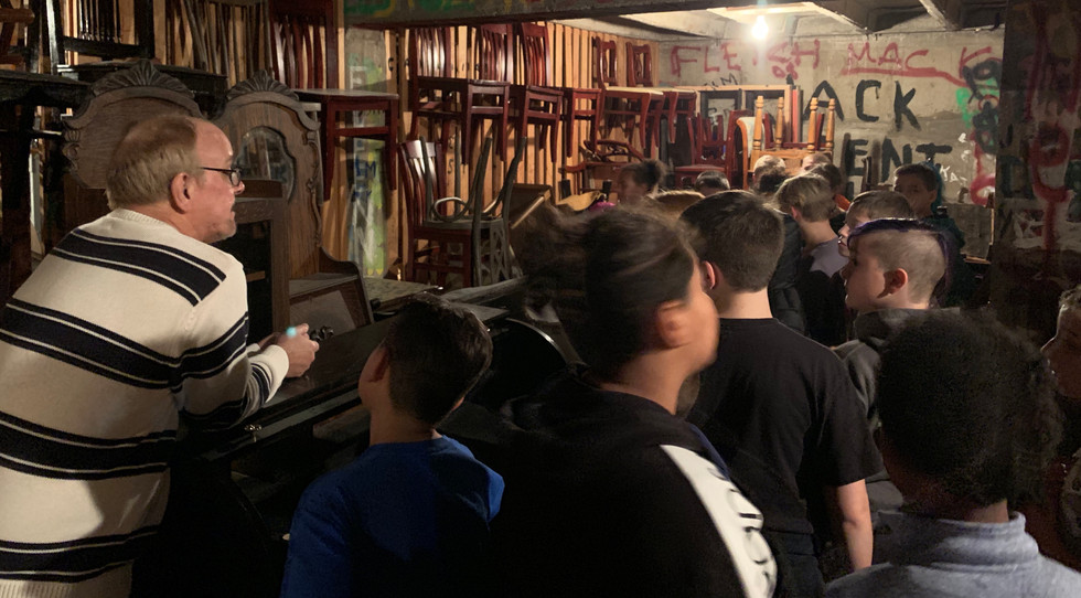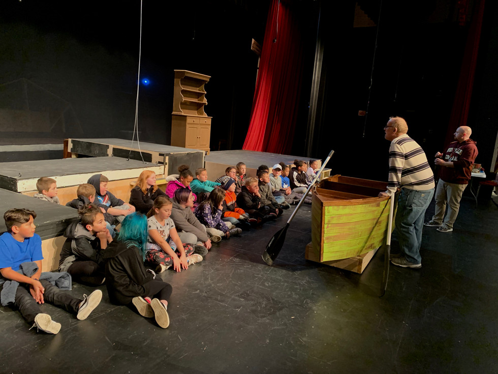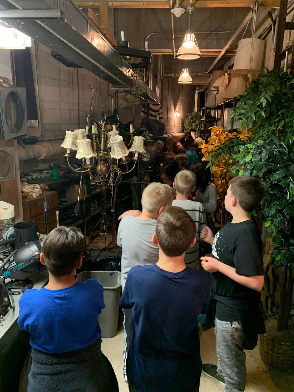 To launch the project we took a backstage tour at Central High School. Central and Hale are putting on Tuck Everlasting the Musical which opens 11/15. We started on the stage where Mr. Pollard and Mr. Girmscheid demonstrated how some of the set elements work. We saw the boat that will be used and even a rising platform. Next we toured the dressing rooms and saw the backstage area. From there we got to see the prop and costume storage areas. We looked at where all electrical props and items are stored. Lastly Mr. Girmscheid showed us the light and sound boards! This was such a cool experience and a great way to dive into this unit. We'll be attending the production at Central this month!