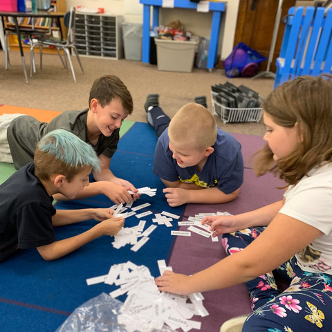 Team Resilience and Team Odyssey have been studying poetry. They've learned about what makes a poem a poem and also have been studying famous poets. Today students took part in a team poetry challenge. They were given a set of words (like magnetic poetry). Teams were challenged to create the best poem they could in 20 minutes utilizing the given words. Next week groups will present their poems, explaining inspiration, meaning, and reflecting on the process. The class will vote for the best poem. Students had to utilize the collaboration, communication, and knowledge of poetry as they completed this task.