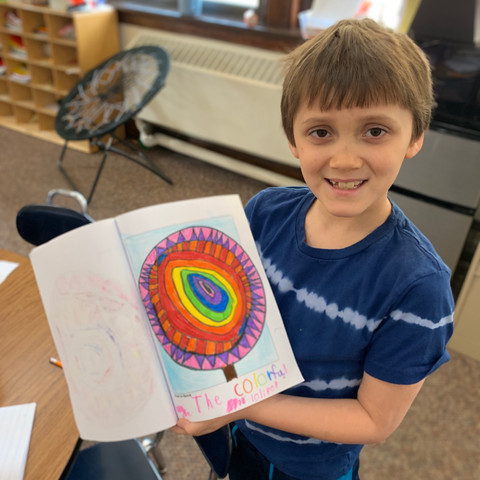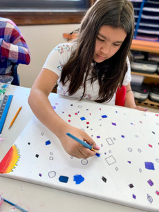 Wow! Team Odyssey students have not only been focusing on attributes of geometric shapes but also studying their artists. Tuesday we discussed important aspects of creating a biography for an artist: early life, family, inspiration, education, awards and achievements, medium, distinguishing characteristics, and whatever else students want to know about their artist. Students have also been exploring art from their artists. I can clearly see inspiration in these pieces but with students' own take! Mondrian, Albers, Kandinsky, and Victor Vasarely!
