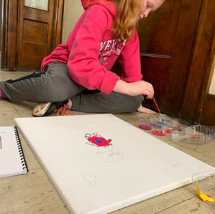 Team Odyssey artists are starting to pencil in designs on their canvases. They have been studying their artist of choice and creating biographical pieces about the artists' lives. Students have also viewed numerous pieces of work by their artist for inspiration. Chantelle and Lotus both are using Josef Albers for inspiration. Reid was inspired by the work of Paul Klee. Since many of the 3rd grade pieces are extremely intricate some students are opting to utilize sharpie rather than paint in order to maintain the level of detail desired.