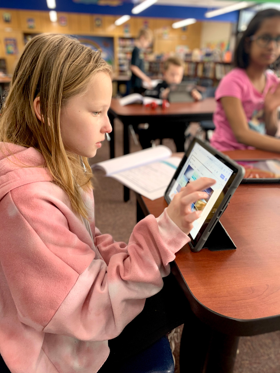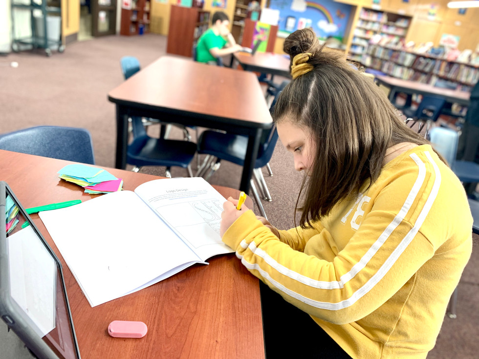 5th Grade RWB Reading Group students are finalizing their business websites. They have identified character traits for their chosen book character, developed an idea for a business based on those traits, created a business web, business plan, original logo, and their final product will be the website. They worked diligently today on their Google Site development.