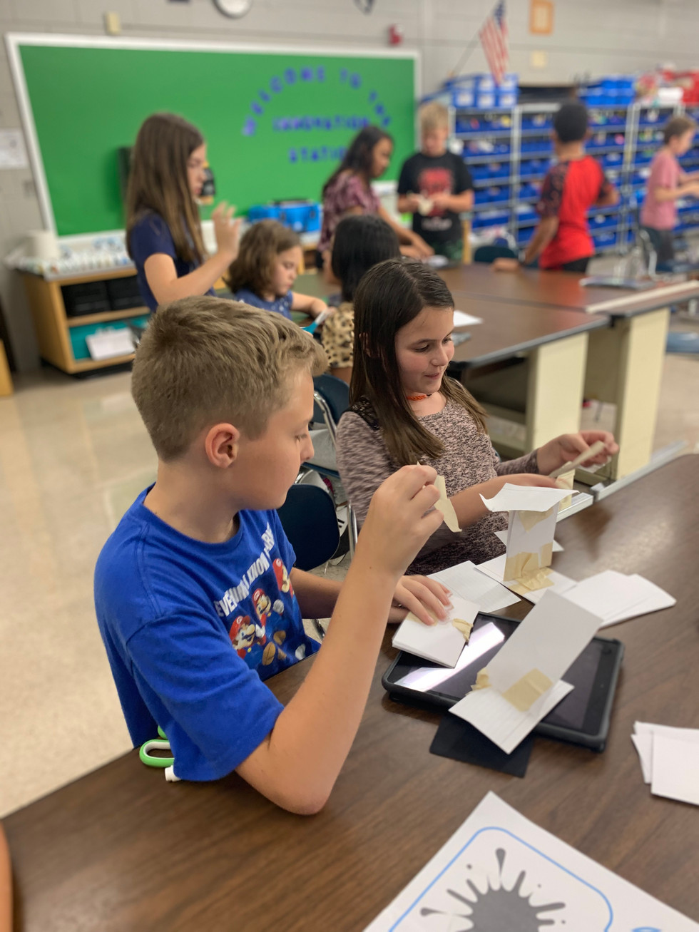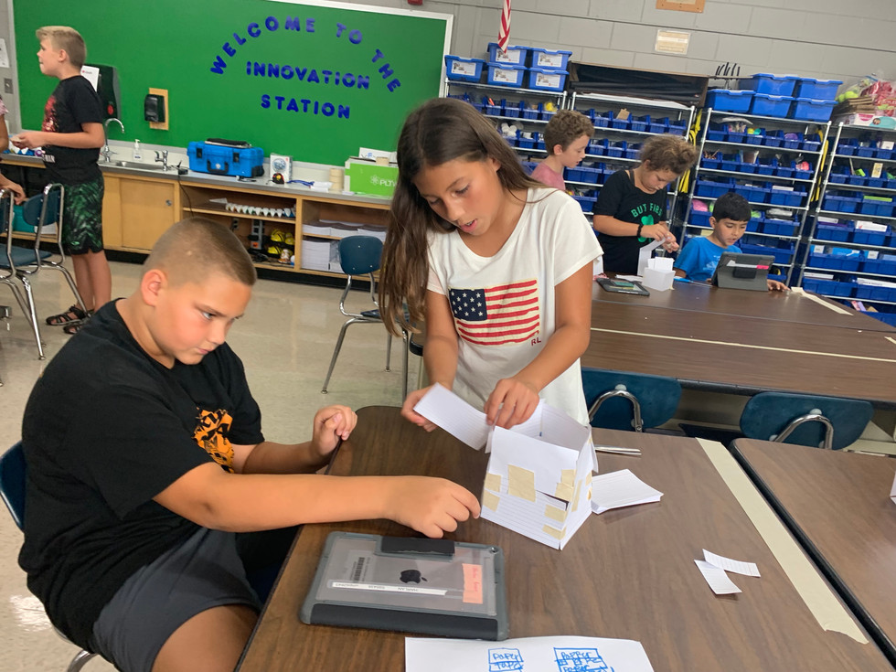 This week in addition to discussing digital citizenship, classes took part in their first Team Challenge. Students will be working frequently in collaborative groups this year during Innovation Station sessions. We would like to establish with students the purpose of strong teamwork skills and interdependent thinking. Today we practiced by challenging the students to create the tallest free standing, weight supporting tower possible with index cards. They worked in groups of 3. Students were given 3 minutes to plan and design, 10 minutes to build, 3 minutes to reflect, 10 minutes to build, then we tested the towers. The ideas of constraints (time and materials) and specific criteria for success are part of Next Generation Science Standards in the are of engineering. Next week we will reflect on the experience and develop norms for collaboration.