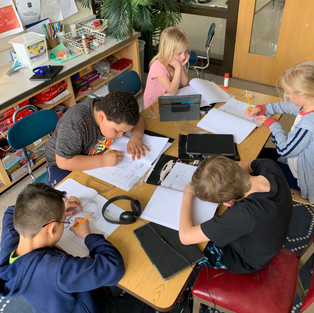3rd Grade math students continue their Geometry and Art PBL unit. For our shared lesson we created different quadrilaterals and identified their attributes. During project work students continued to explore the work of different artists that utilize geometric figures in their art. Several students have identified the artists that they will research and use as inspiration in the art they create. Serpahina and Autumn are both going to study Victor Vasarely while Grant and Majerle will be building their knowledge about Piet Mondrian. Jason and Lilith are interested in a number of artists and will make their selection next week.