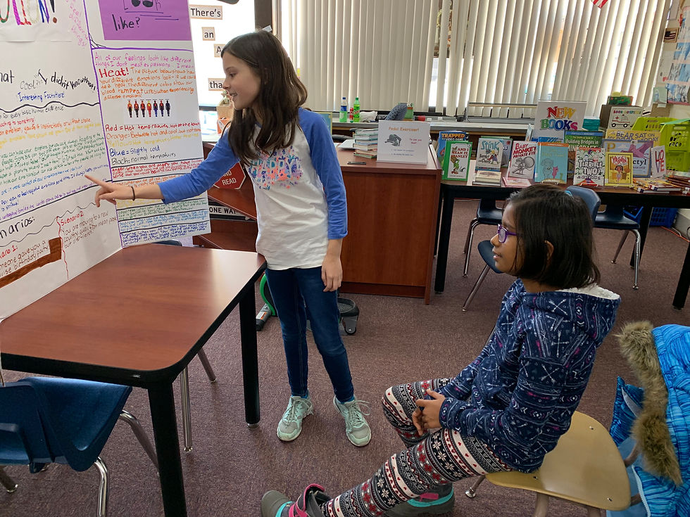 Audrey completed her tri-fold and had a chance to practice presenting her project, "The Science behind Emotion". She had peers and teachers act as 20% fair audience members so she could answer questions and describe her research. With the feedback she received she made a few modifications and found out where she needed to continue her research in order to answer all questions that come her way next Thursday.