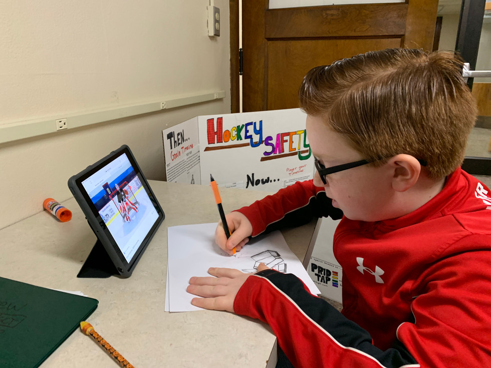 Andrew decided that in addition to his research, timeline, and predictions about future sports equipment he would make a goalie diagram to label equipment for those not familiar with hockey.