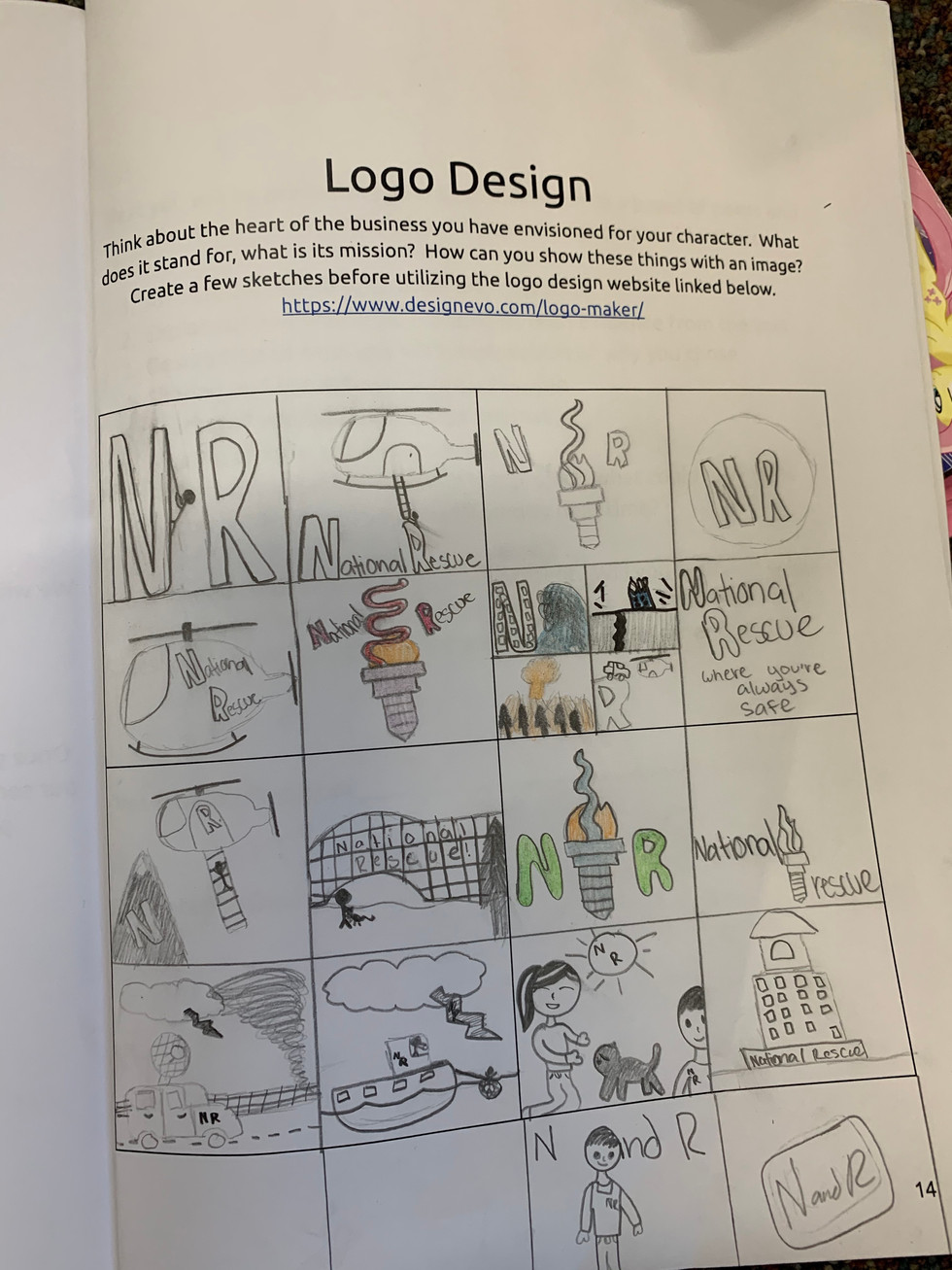 5th Graders at Jefferson are at a variety of stages in their business planning venture. Their project task was to design a business that would fit the traits and motivations of a character they chose in their independent book. They were asked to participate in a brainstorming protocol, choose one business idea, create a business web, create a formal business plan, design a logo, and build a website for the business.