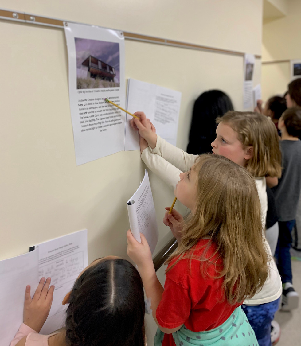 Today students took part in a Gallery Walk where they observed pictures and descriptions of homes designed specifically to combat extreme weather. Ad they circulated they noted what they observed and wondered about each of the structures.