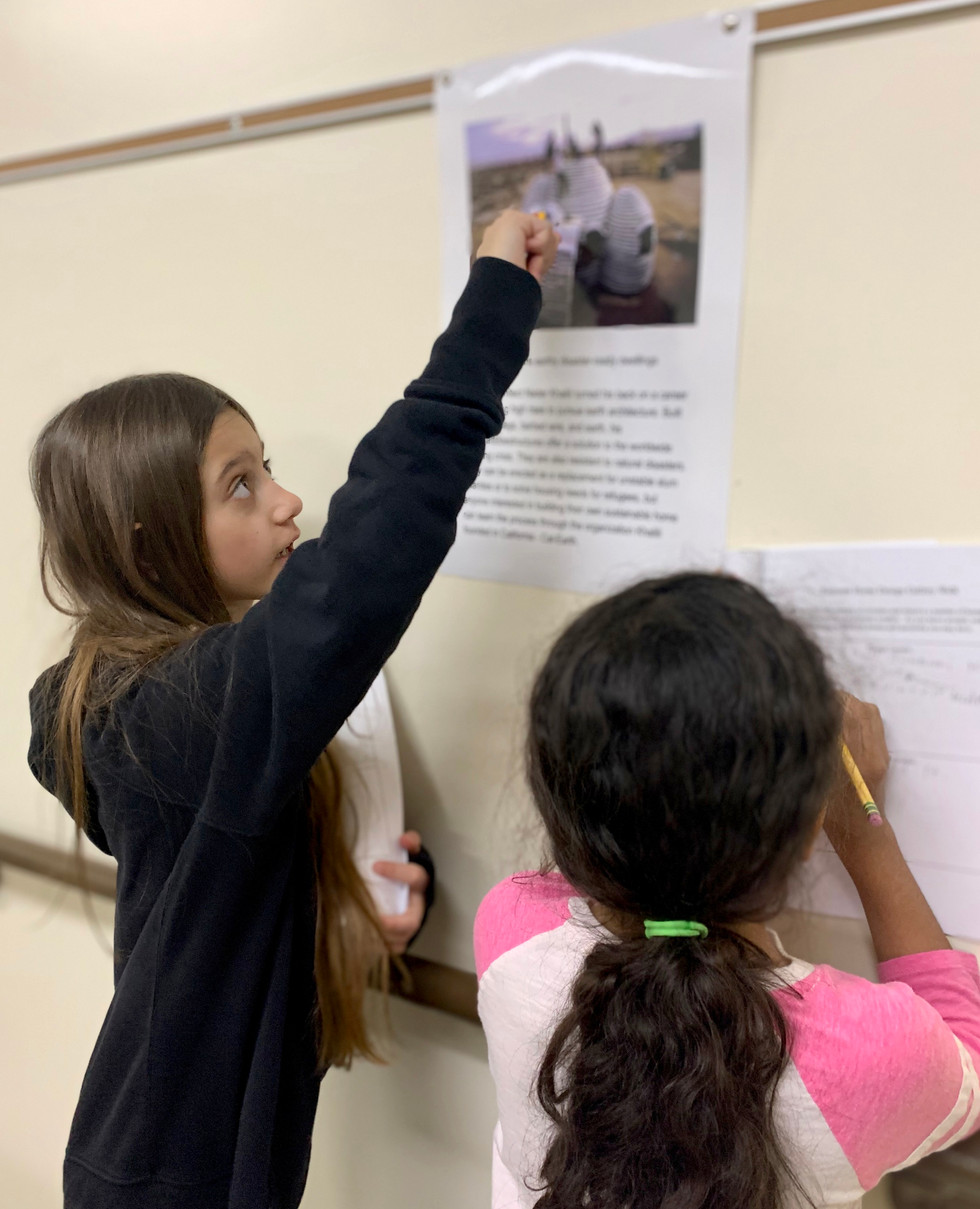 After the Gallery Walk groups convened to discuss what they had seen and read. They made connections to their weather event and many were ready to brainstorm how their own model homes may be designed. After group discussions they had the chance to share out ideas if they wished. Some wanted to keep their initial design ideas under wraps (I think we may have a little competitive spirit happening here).