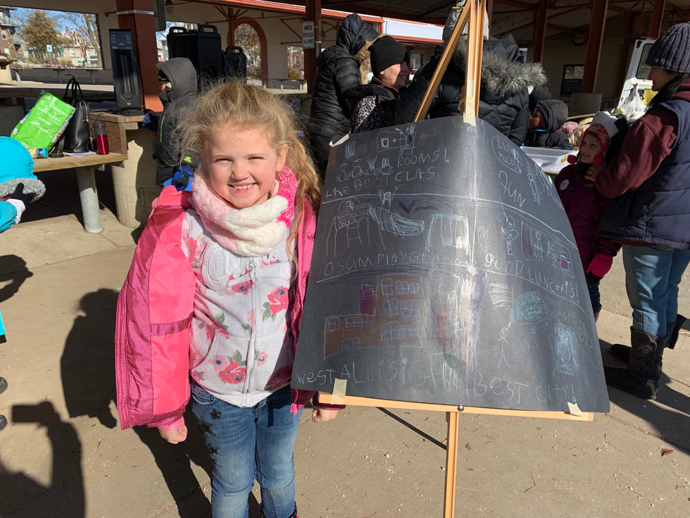 After months of hard work, students went public with their project products today. This project was centered around the Driving Question, "How can we convince families to come to our city?". Within the unit K/1 students focused on opinion writing. They had the opportunity to choose what kind of product they would like to create. Some students made commercials, others created posters, and some wrote and illustrated books. All of the products were designed to convince people to visit the city of West Allis. Throughout the unit they took a Trolly ride to tour the community, interviewed community members. They applied their writing skills as they created their posters.